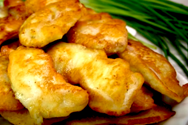 Labai skanūs vištienos gabalėliai svogūninėje tešloje