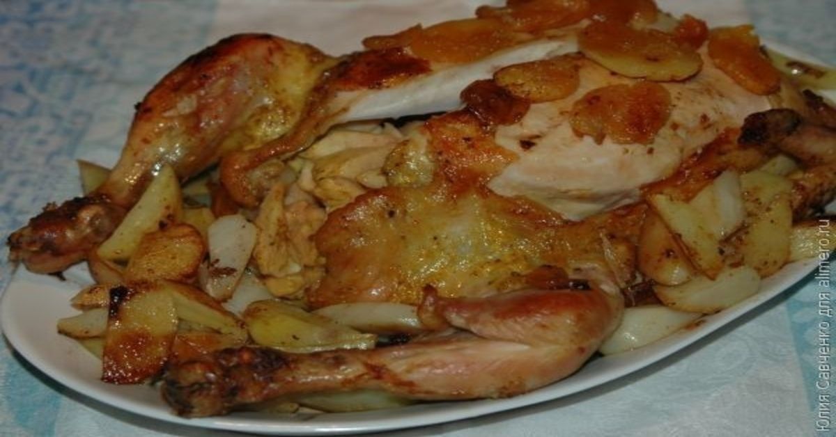 Kvapni kepta vištiena su džiovintais abrikosais ir obuoliais!