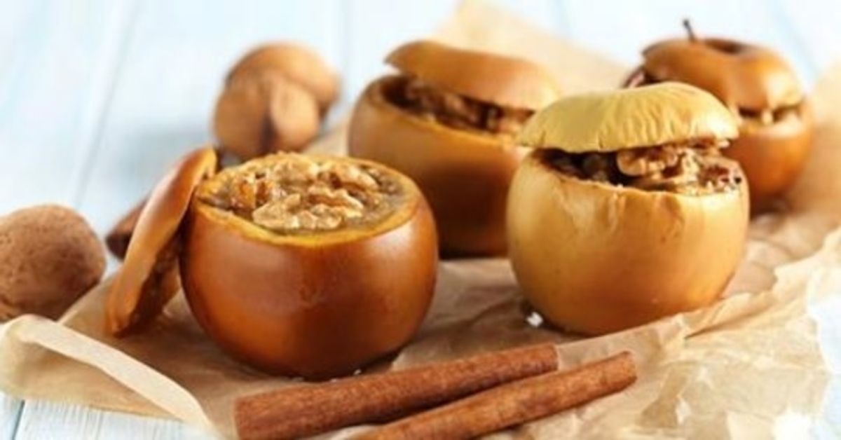 Kepti obuoliai su avižiniais dribsniais ir graikiniais riešutais. Išbandykite!