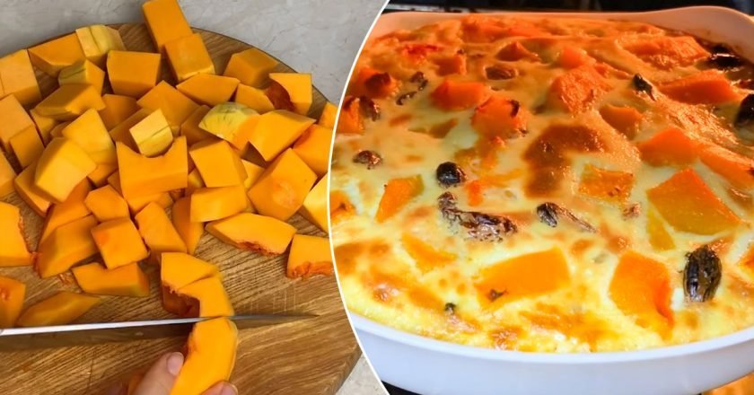 Moliūgų užkepėlė su razinomis: receptas be miltų