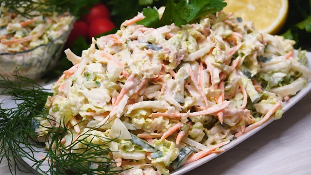 Pekino kopūstų salotos su menkių kepenėlėmis