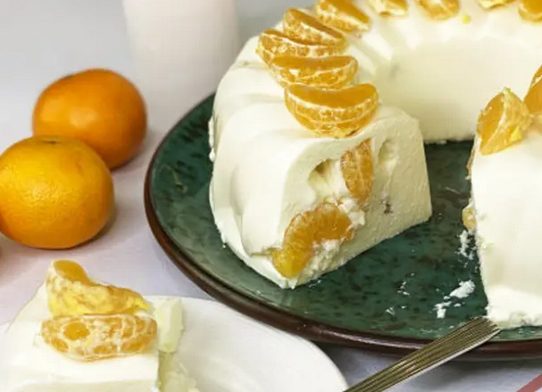 Varškės tortas su mandarinais, kurio nereikės kepti