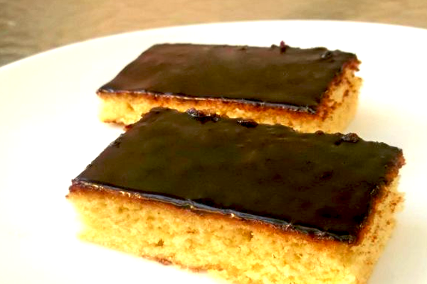 Švelnaus skonio pyragas su šokoladiniu glaistu