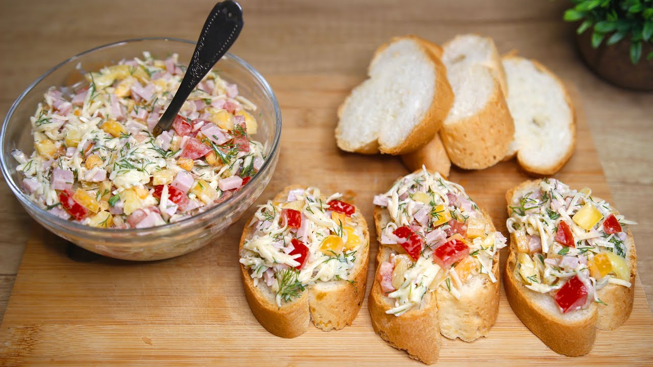 Skani kepta bagetė su daržovėmis, kumpiu ir sūriu. Greitas ir lengvas užkandis, kuris jums patiks!