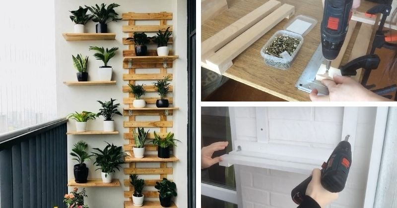 Puiki idėja balkonui: kopėtėlės su lentynomis gėlėms