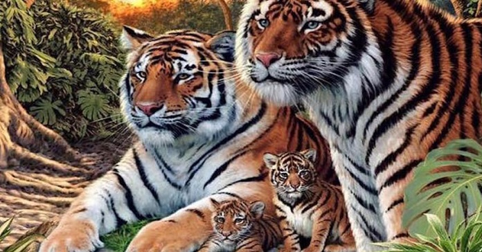 Iš pradžių jūs matote tik 4 tigrus. Bet pažvelkite atidžiau. Kiek jų yra iš tikrųjų?