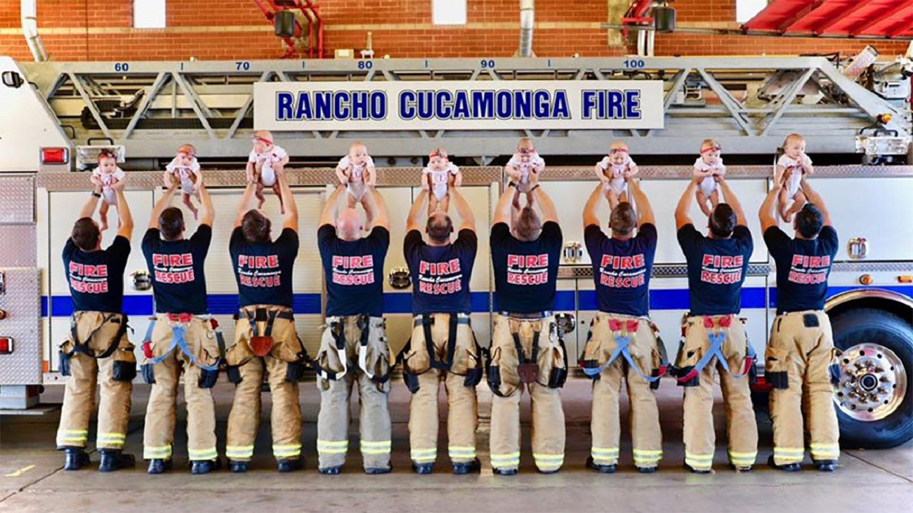 Devyni ugniagesiai savo mažylių gimimą įamžino įspūdingoje fotosesijoje