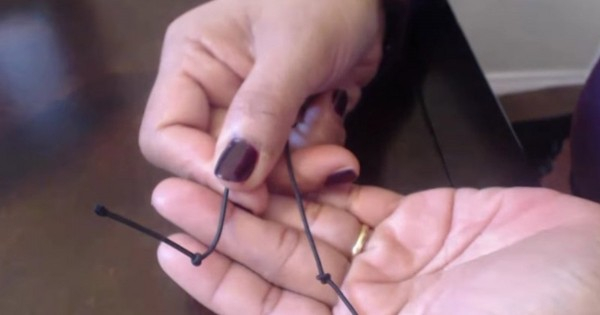 Pasiimkite dvi elastingas gumas ir kiekvienos dalies gale suriškite mazgą, kad susegti žiogeliai negalėtų nukristi.