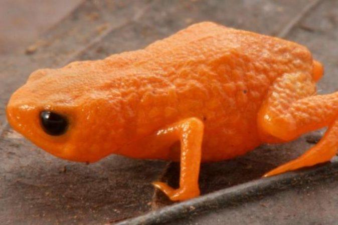 Giliai pietų Brazilijos kalnuose į dėmesio centrą šoktelėjo ryškiai oranžinė vos kiek daugiau nei centimetrą ilgio varlytė.