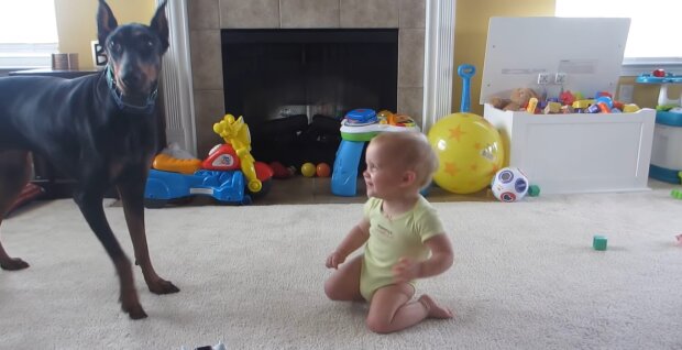 Mūsų keturkojai draugai kartais mus kaip reikiant nustebina. Kai kurie jų rodo ypatingą švelnumą mažiausiems dvikojams šeimos nariams. Nickas Elliottas ir jo žmona užfiksavo, kaip jų šuo Tommy rūpinasi jų mažyle.
