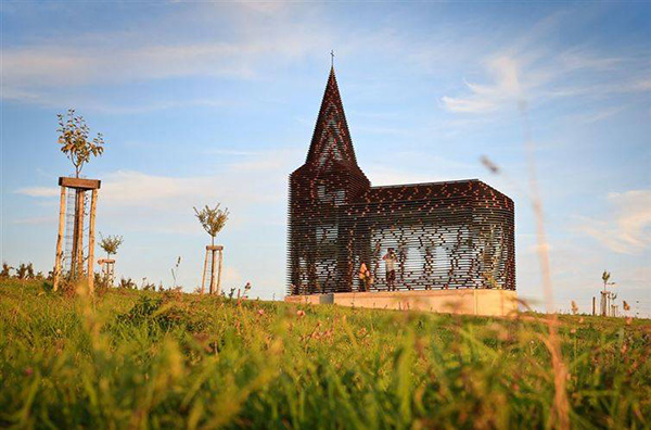 Bažnyčia pastatyta iš 100 sluoksnių sukrauto plieno, todėl pastatas keičia savo formą, atsižvelgiant į žiūrėtojo kampą, iš kurio jis jį stebi.