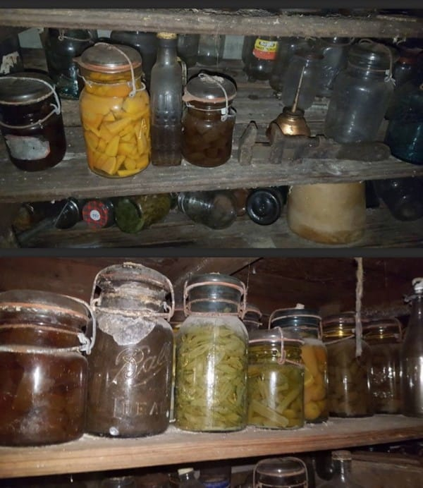 Daugelis stiklinių buvo tušti, tačiau kai kurie buvo pripildyti įvairaus turinio. Vienas iš ankstesnių namo savininkų tikriausiai mėgo ruošti maistą arba rūsyje turėjo maisto parduotuvę.