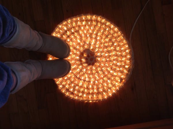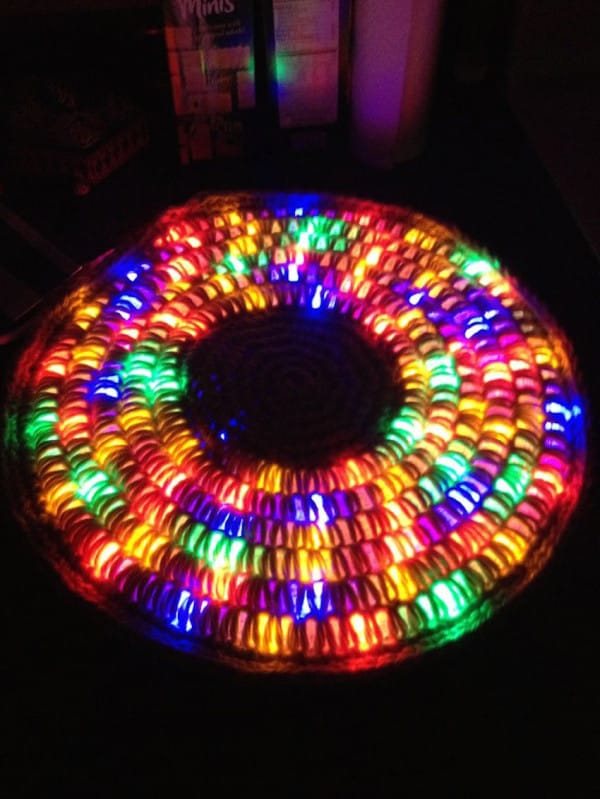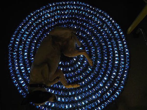 Nėra nieko gražesnio už dekoratyvinius žibintus! Tai yra lengvas, romantiškas būdas pakeisti bet kurio kambario nuotaiką. Prieš kelerius metus, suomių menininkė Johanna Hyrkäs parodė, kaip galima pasigaminti kilimėlį, naudojant LED girliandą, kurią galima atsargiai apnerti siūlais.