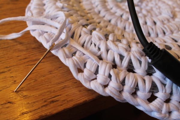 Ji sunėrė siūlus aplink laidą su lemputėmis. Iš pradžių tai atrodė keistai, bet rezultatas gavosi gražus!