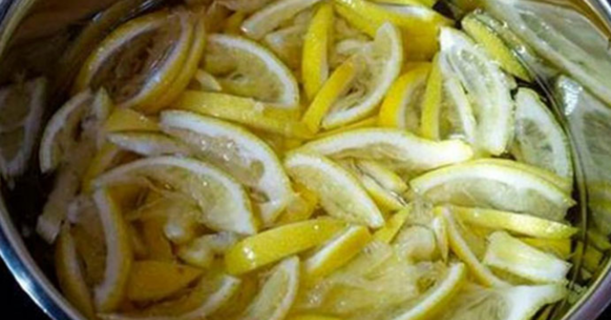 Tada užpildykite puodą vandeniu ir įdėkite citrinų žievelę (kuri liko po sulčių).