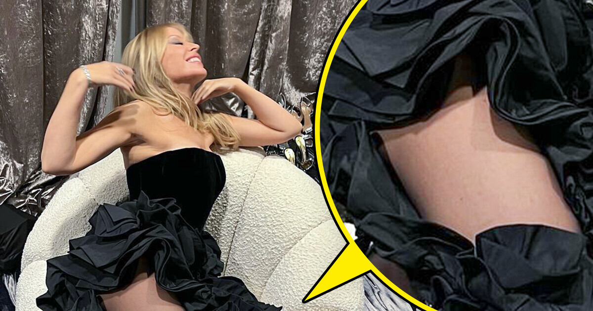 Žavioje nuotraukoje Kylie Minogue dvelkė elegancija ir įtaiga, pasipuošusi stulbinančia juoda suknele su rauktu sijonu, kuris puikiai papildė jos permatomas juodas pėdkelnes. Ši apranga demonstravo jos neįtikėtiną kūno sudėjimą ir ilgas, stangrias kojas. Ji įrodė gerbėjams, kad amžius tėra skaičius.