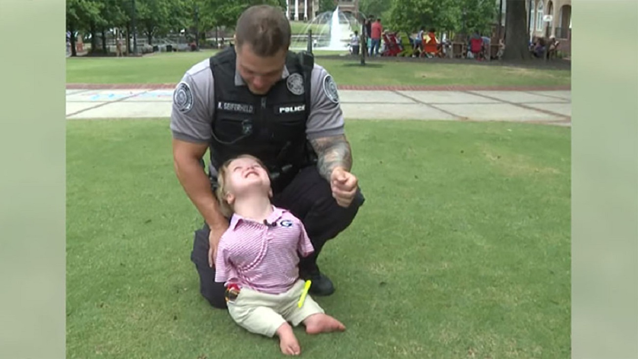 Harrisonas Humphriesas gimė be rankų ir kojų kaulų, tačiau tai netrukdo 6 metų berniukui iš Džordžijos norėti tapti policininku.