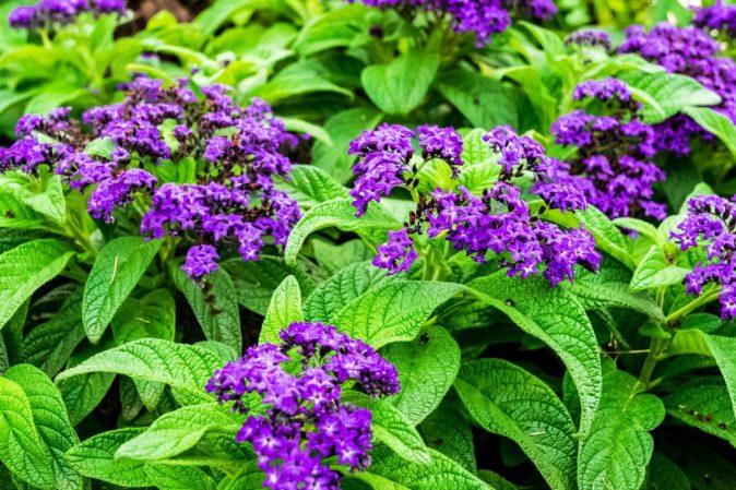 Peruvinis heliotropas – vienas kvapniausių sodo augalų. Jo violetiniai žiedai, susitelkę tankiuose skėčiuose, skleidžia vanilės kvapą su ryškia migdolų ir marcipano nata. Aromatas sustiprėja vidurdienį ir vakarėjant.