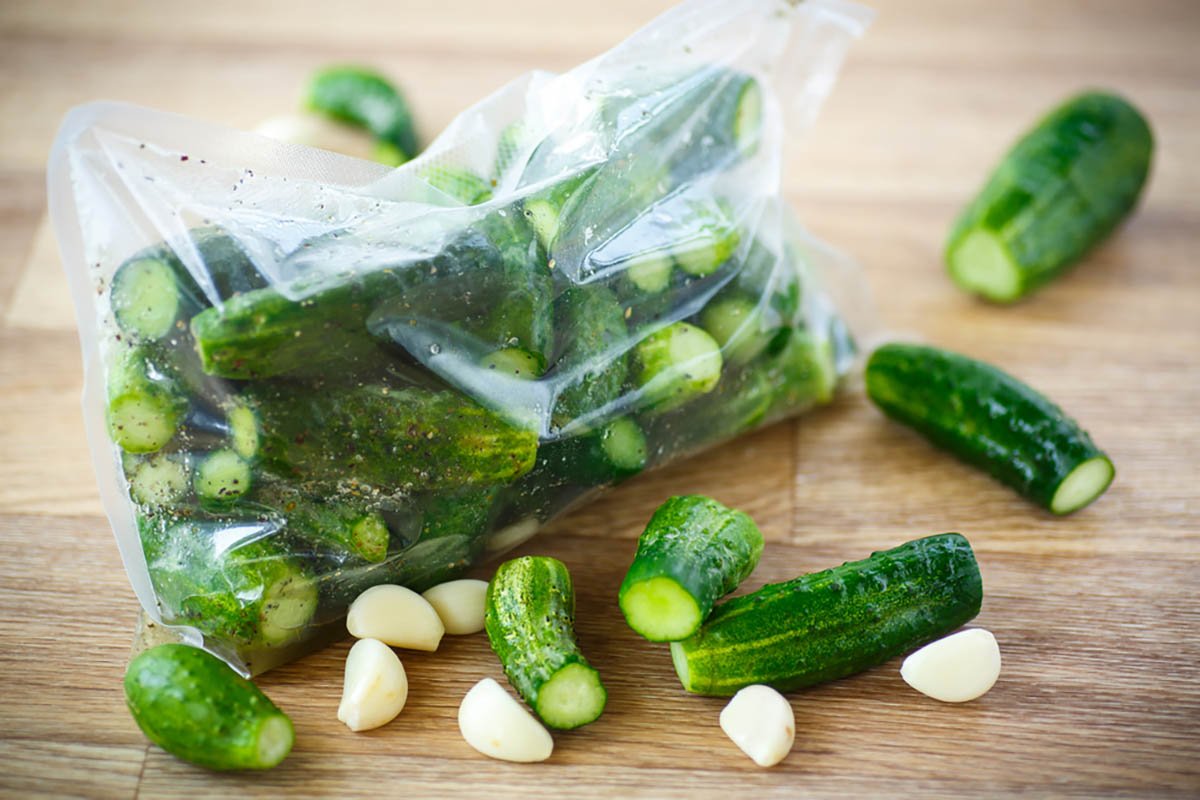 Pavyzdžiui, jei mėgstate gaminti šviežias vasariškas salotas, tiesiog supjaustykite daržovę kubeliais. Supjaustyti agurkai visas savo savybes išsaugos specialiuose šaldymo maišeliuose. Geriausia iš maišelių pašalinti visą oro perteklių, kad susidarytų vakuumo efektas. Tada agurkai tolygiai sušals.