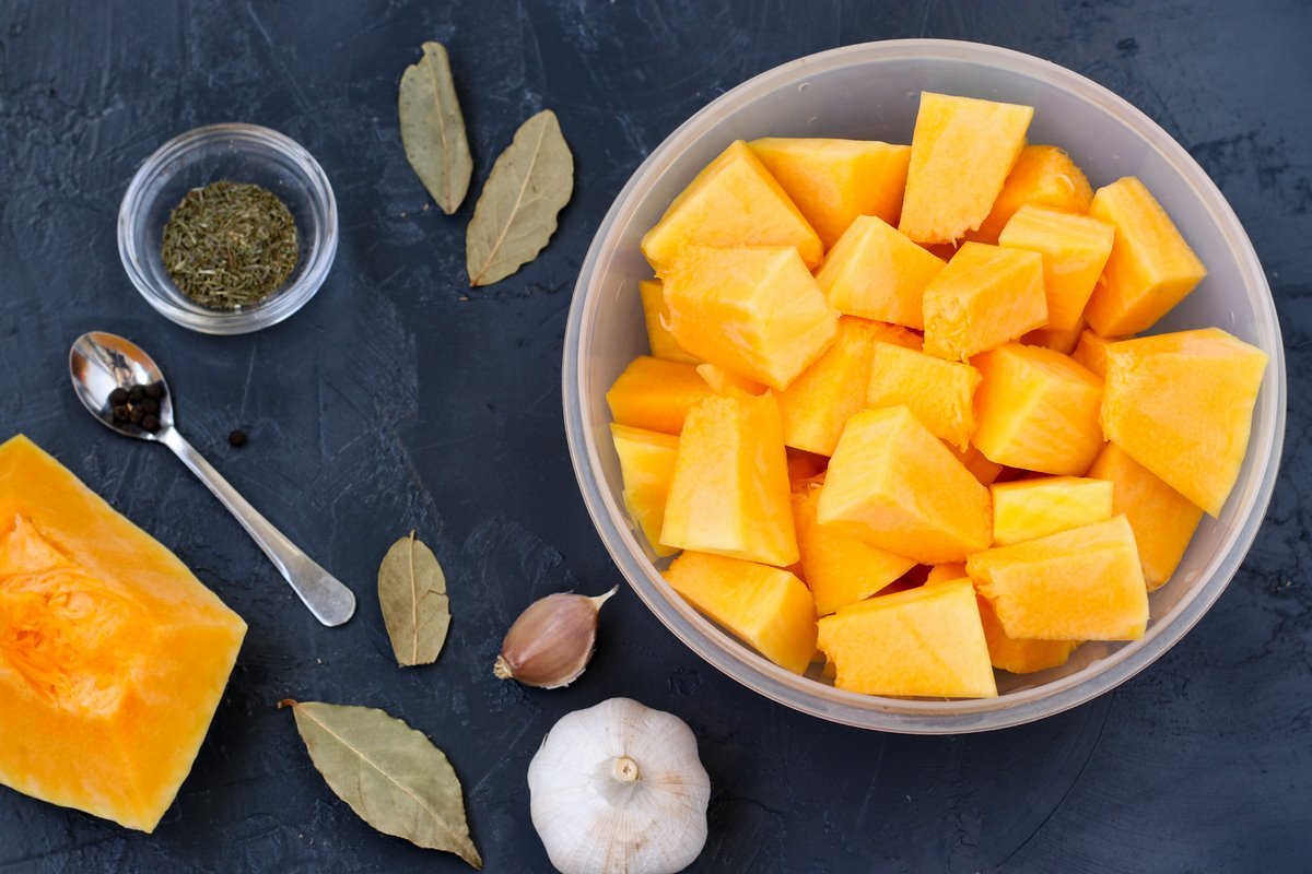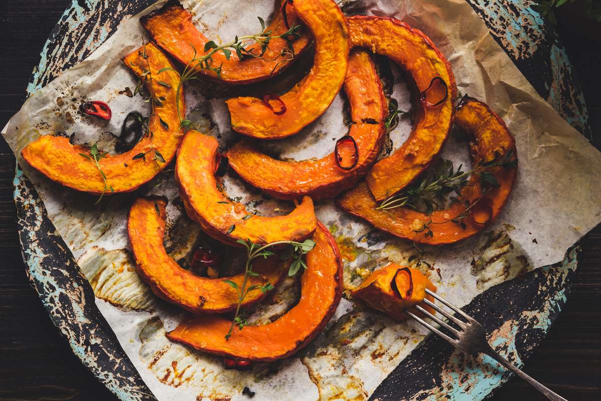 Kaip iškepti moliūgo skilteles su česnaku ir baziliku