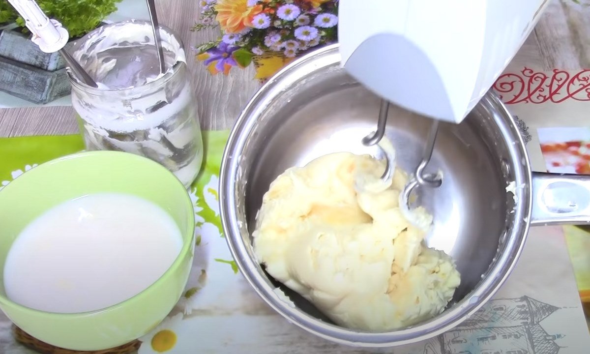 Viskas, ko jums reikia, yra grietinė. Sudėkite ją į gilų dubenį.