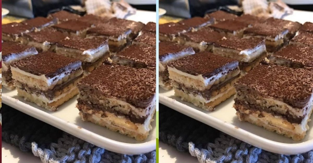 Supilkite 2/3 grietinė su kakava ir vėl uždenkite sausainiais.