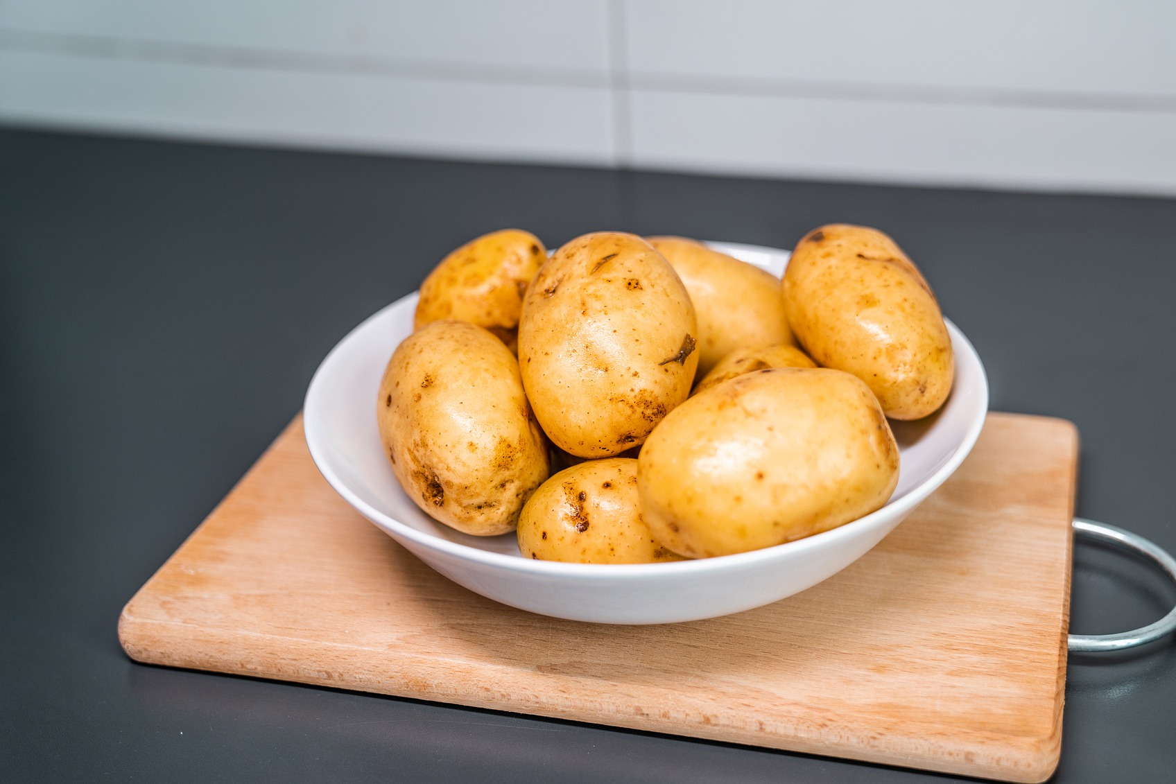 Tada išvirkite nuluptas ir supjaustytas bulves.