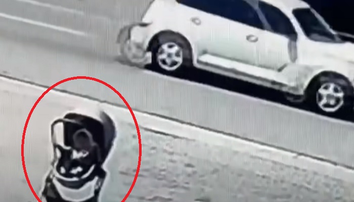 Žiūrėkite neįtikėtiną vaizdo įrašą: vaikiškas vežimėlis riedėjo tiesiai į greitkelį