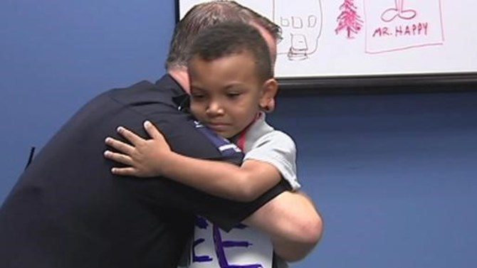 5 metų berniukas sujaudino visą policijos nuovadą, kai atėjo su šiuo plakatu ant kaklo