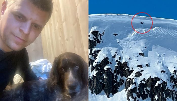 Istorija su laiminga pabaiga: du vyrai išgelbėjo šunį, įstrigusį ant kalno atbrailos