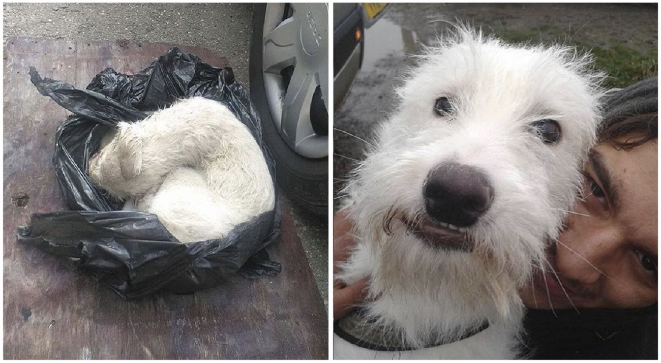 Mažas šuniukas, vos gyvas rastas plastikiniame maišelyje, gavo antrą šansą