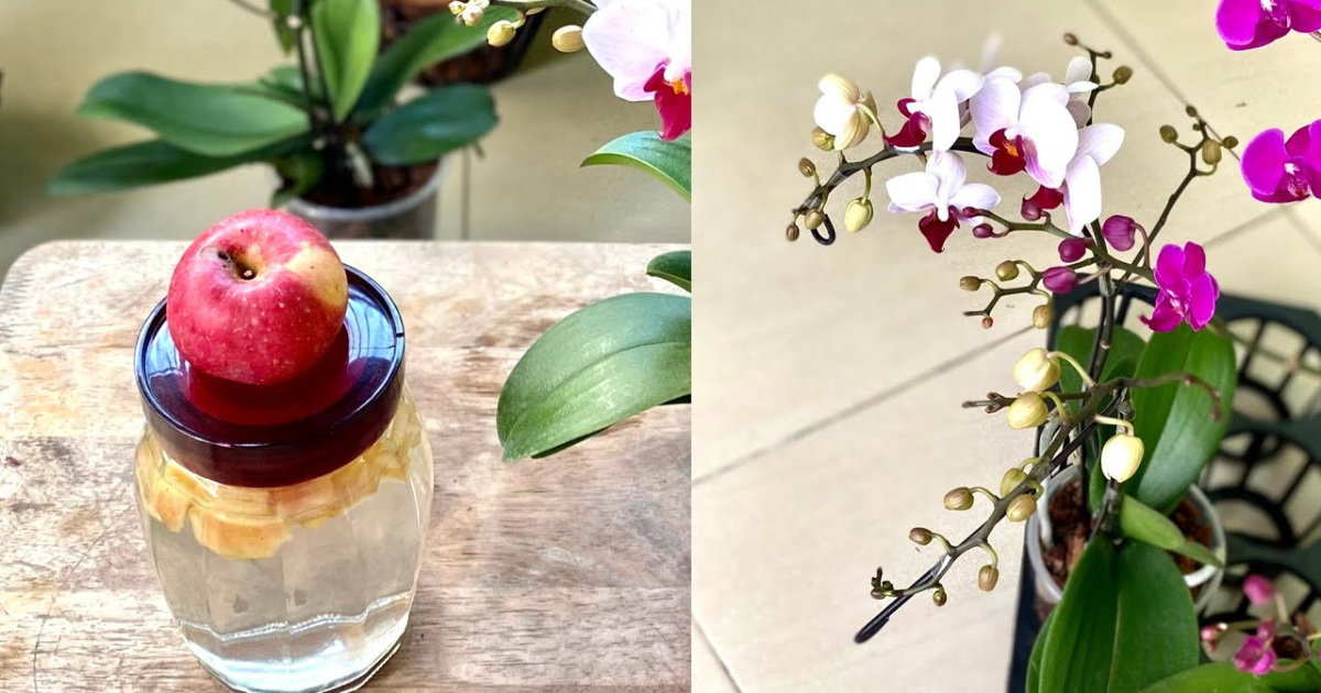 Obuolių žievelės yra natūrali trąša orchidėjoms. Daug žiedų ir šaknų!