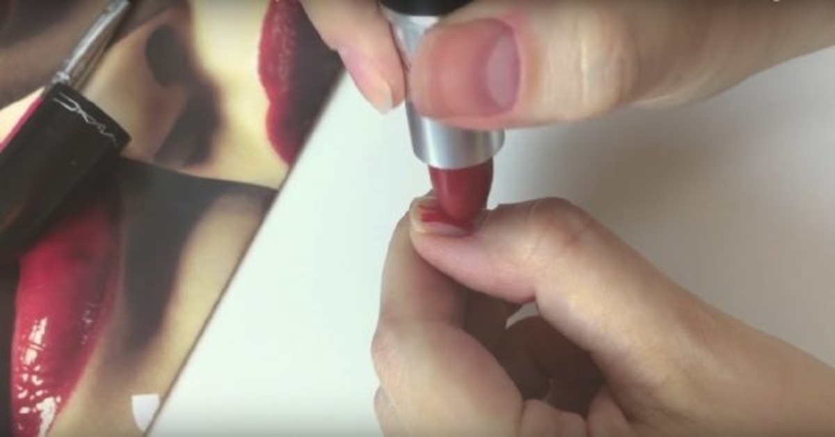 Matiniai lūpų dažai gali būti tepami ant nagų ir iš viršaus padengiami skaidriais lakais. Manikiūras paruoštas.