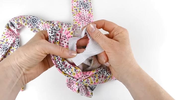 Išverskite audinį į kitą pusę. Išlyginkite.
