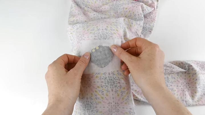 Iš blogosios pusės pritvirtinkite gražų audinį, kuris uždengs skylutę drabužyje.