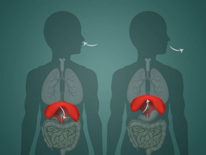 Diafragma yra po plaučiais, tiesiai virš pilvo. Kvėpavimą diafragma sudaro gilūs, ramūs įkvėpimai ir ilgi iškvėpimai. Įkvepiant pilvas plečiasi, o iškvėpus pati diafragma susitraukia.