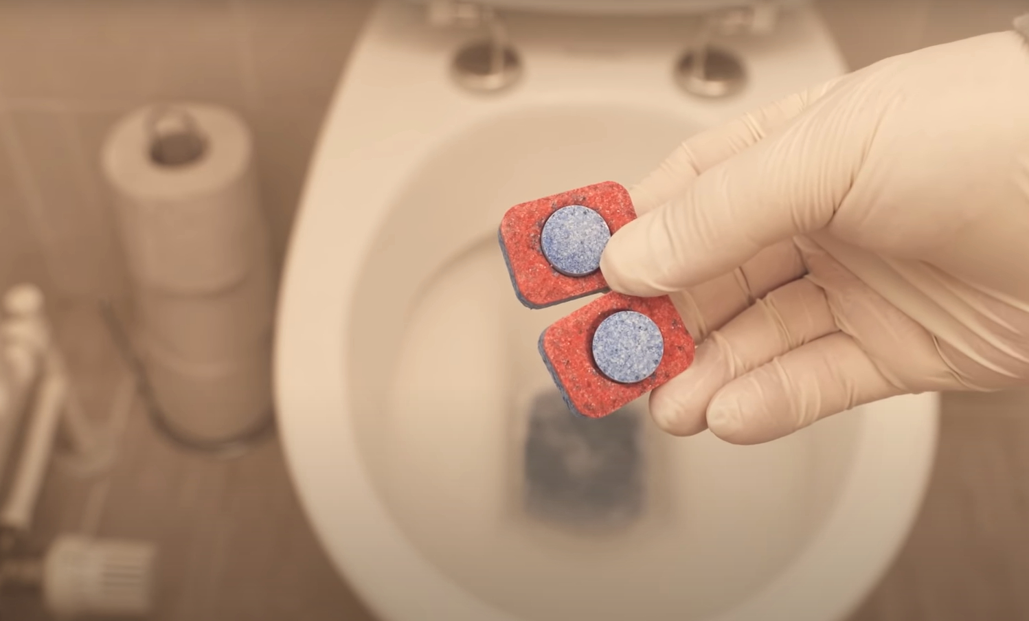 Elektriniu virduliu užvirkite vandenį ir supilkite jį į tualeto unitazą. Tada įmeskite dvi indaplovės tabletes. Leiskite joms visiškai ištirpti maždaug apie pusvalandį.