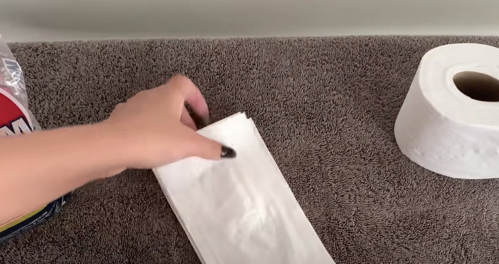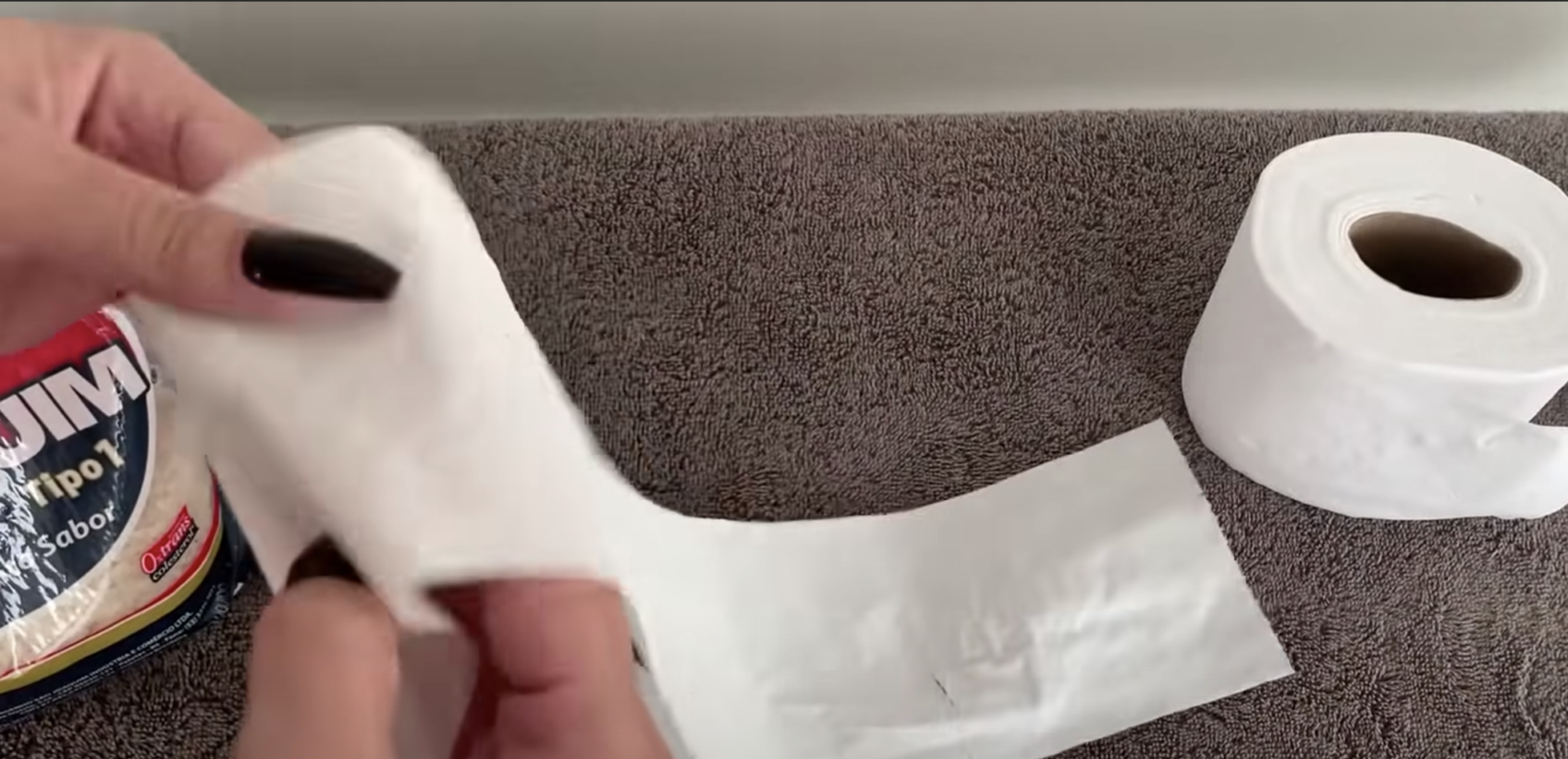 Sulenkite tualetinio popieriaus skiautę per pusę, o tada ją dar kartą sulenkite.
