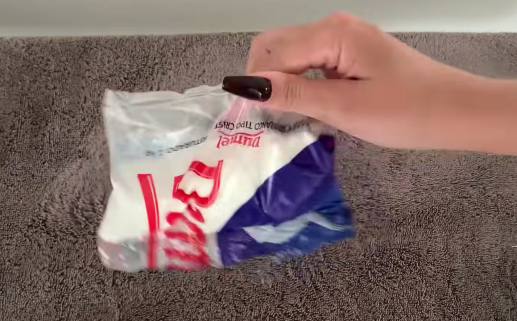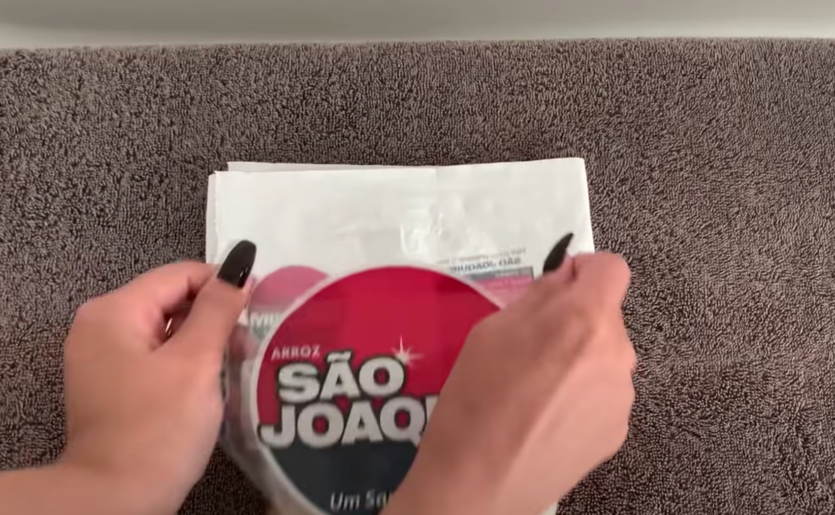Tada tiesiog padėkite atidarytą maišelį ant popieriaus, kaip matote paveikslėlyje.