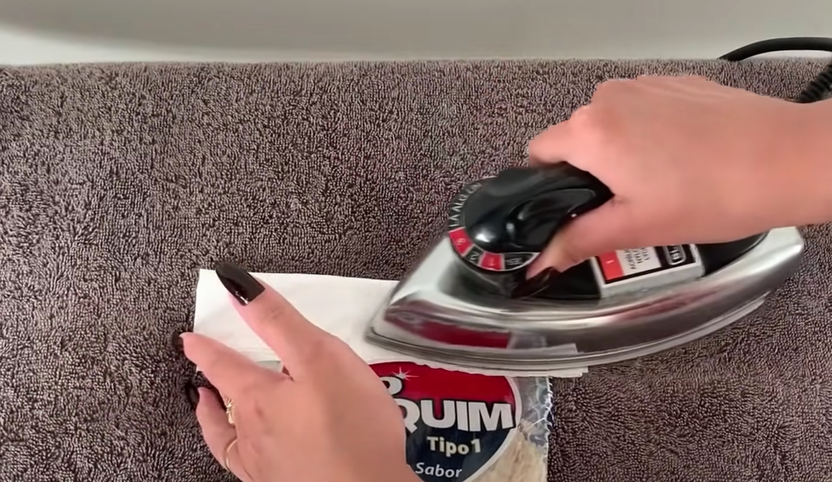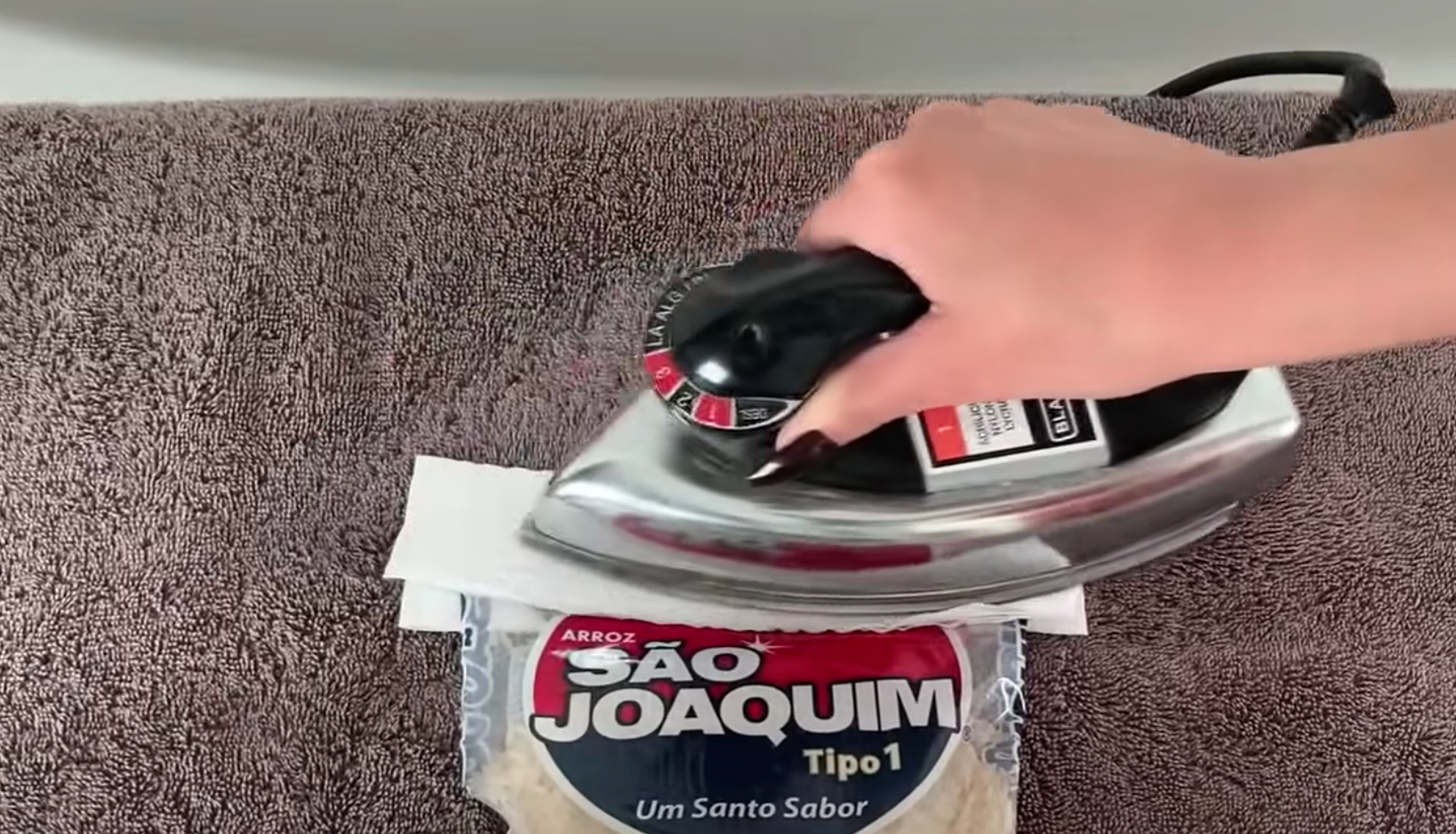 Kaip įprastai, įkaitinkite lygintuvą ir lyginkite per tualetinį popierių.