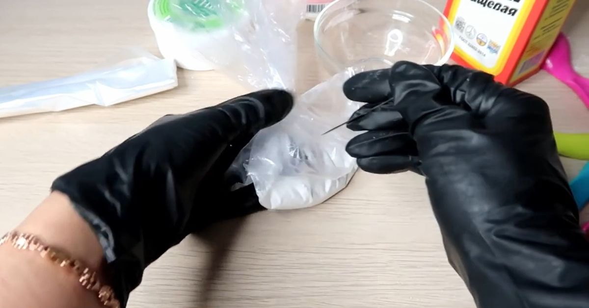 Naudodami adatą, padarykite apie 6–8 skylutes, per kurias valymo mišinys po truputį išbėgs.