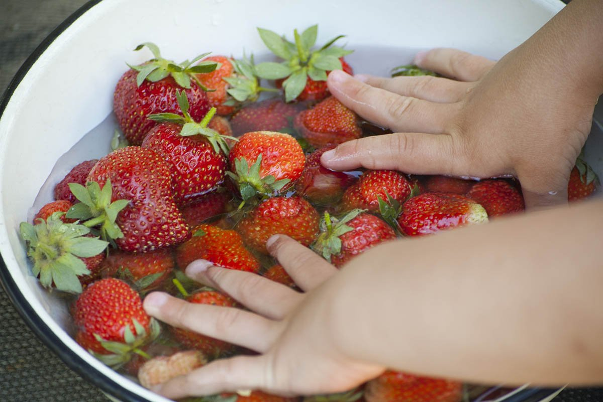 Bet kokiu atveju, čia yra visas ritualas! Pirmiausia braškes reikia nuplauti po tekančiu vandeniu. Taip atsikratoma visų žiedadulkių ir nešvarumų. Tada braškes reikia nuplikyti verdančiu vandeniu, kad žūtų visi patogeniniai organizmai. Pavyzdžiui, E. coli. Tai dar ne braškių kančių pabaiga. Po nuplikinimo, jas reikia 5-15 minučių palaikyti šaltame vandenyje.