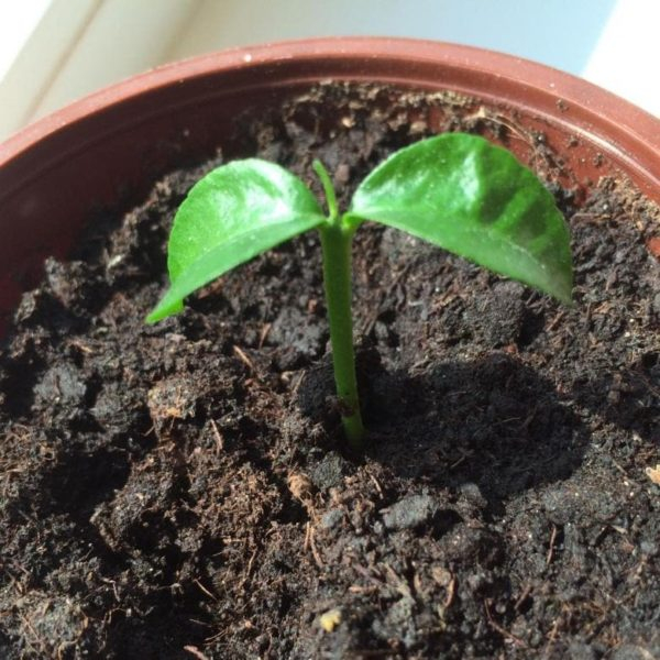 Užpildykite vazoną dirvožemiu. Palaistykite dirvą ir palikite indą, kol nutekės visas vanduo. Dirvožemis turi likti drėgnas, bet ne šlapias. Ant paviršiaus uždėkite tris sėklas ir padenkite jas 1,5 cm dirvožemiu. Uždenkite vazoną plastikine plėvele arba plastikiniu maišeliu, kad sukurtumėte šiltnamio efektą.