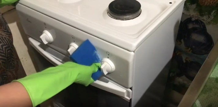 Palikite 5-10 minučių ir nuvalykite paviršių virtuvine kempine, tada nuplaukite švariu vandeniu ir sausai nušluostykite.