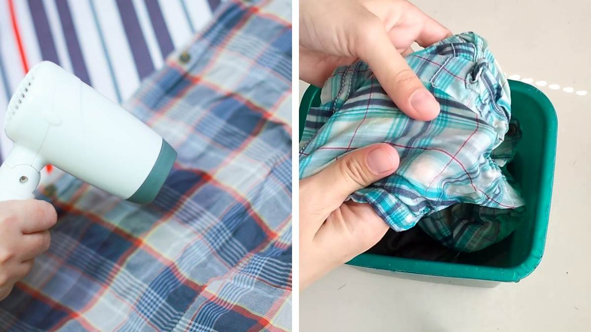 Drabužių dėmių šildymas plaukų džiovintuvu