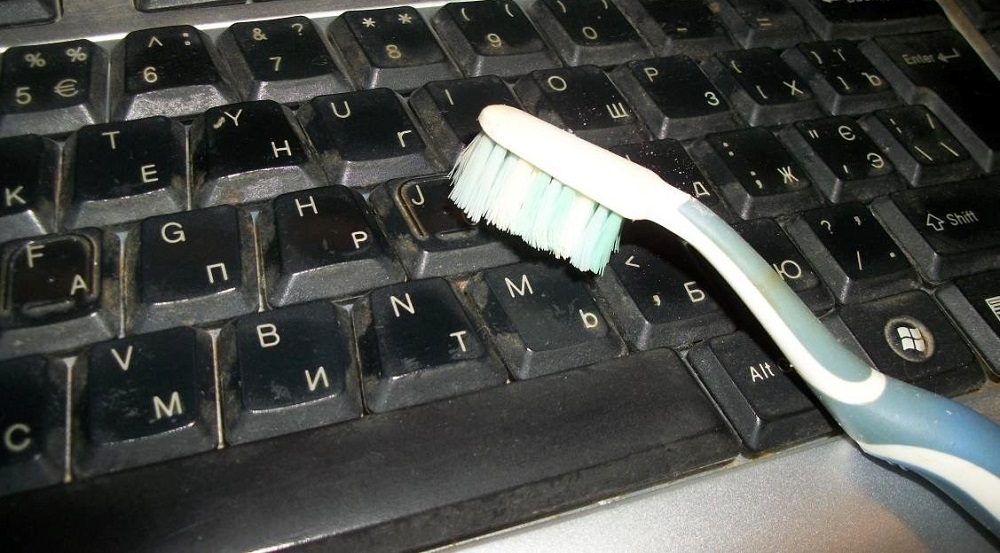 Nesvarbu, kaip švariai ir atsargiai naudojate stacionarų ar nešiojamą kompiuterį, ilgainiui klaviatūroje susikaupia nešvarumai. O pašalinti juos su įprastu skudurėliu ar kempine beveik nėra jokios galimybės. Gali padėti dantų šepetėlis su standžiais šereliais! Tiesiog apverskite klaviatūrą ar nešiojamąjį kompiuterį ant šono ir švelniai išvalykite nešvarumus. Prieš tai nepamirškite išjungti kompiuterio.
