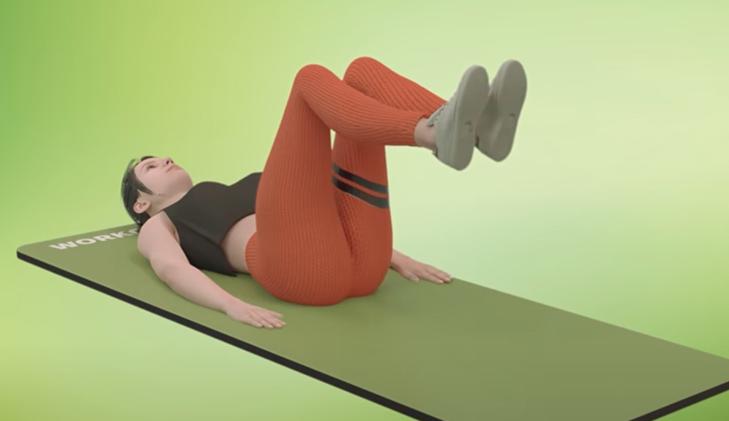 Atsigulę ištieskite kojas ir pakelkite jas virš kilimėlio.