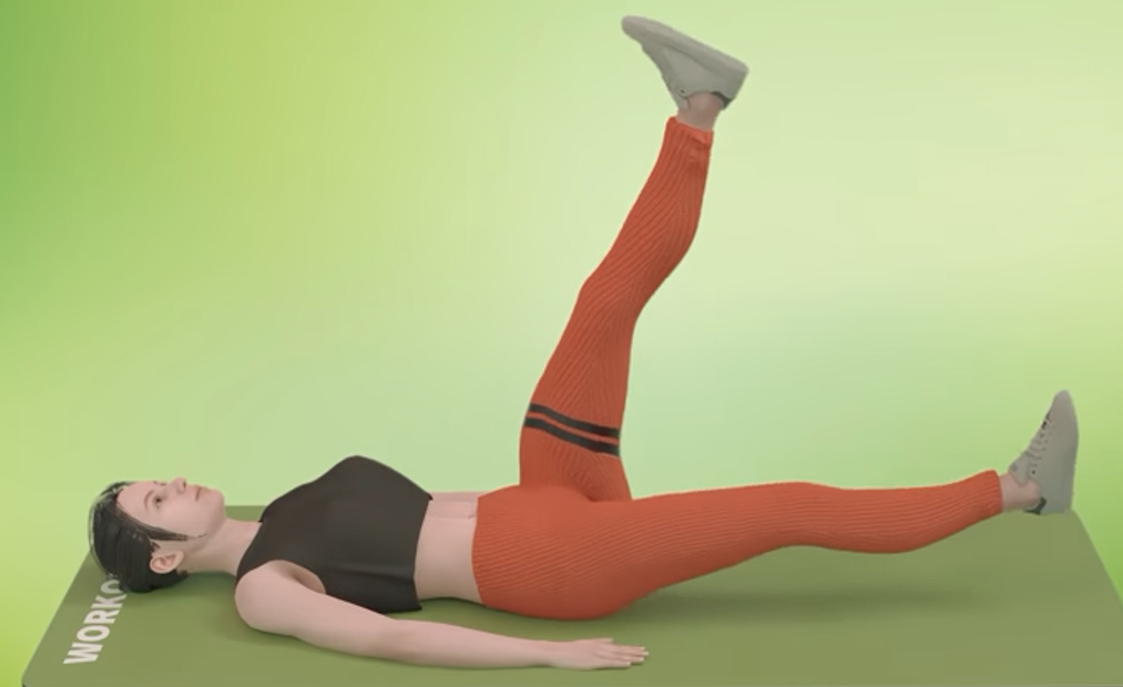 Pakelkite viršutinę koją kuo aukščiau, laikydami ją ištiestą.