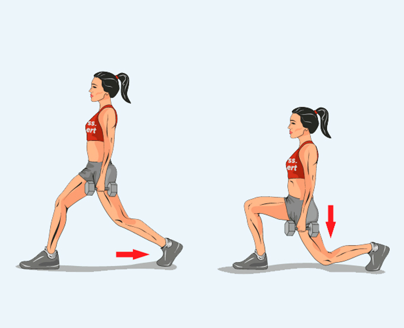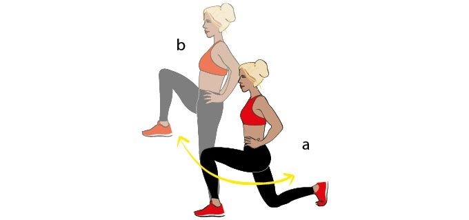 Paprasčiausias variantas, nereikalaujantis papildomos apkrovos. Pratimus atlikti paprasta – iš stovėjimo būsenos padarykite žingsnius į priekį, pakaitomis lenkdami kojas stačiu kampu. Optimaliai reikėtų atlikti tris penkiolikos „žingsnių“ rinkinius su kiekviena koja.
