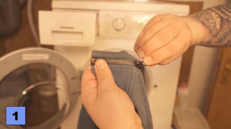 Jei skalbiate drabužius su užtrauktuku, būtinai jį užsekite. Priešingu atveju jis gali užsikabinti už kitų drabužių ir juos suplėšyti. Tas pats galioja ir skalbiant drabužius su sagomis.
